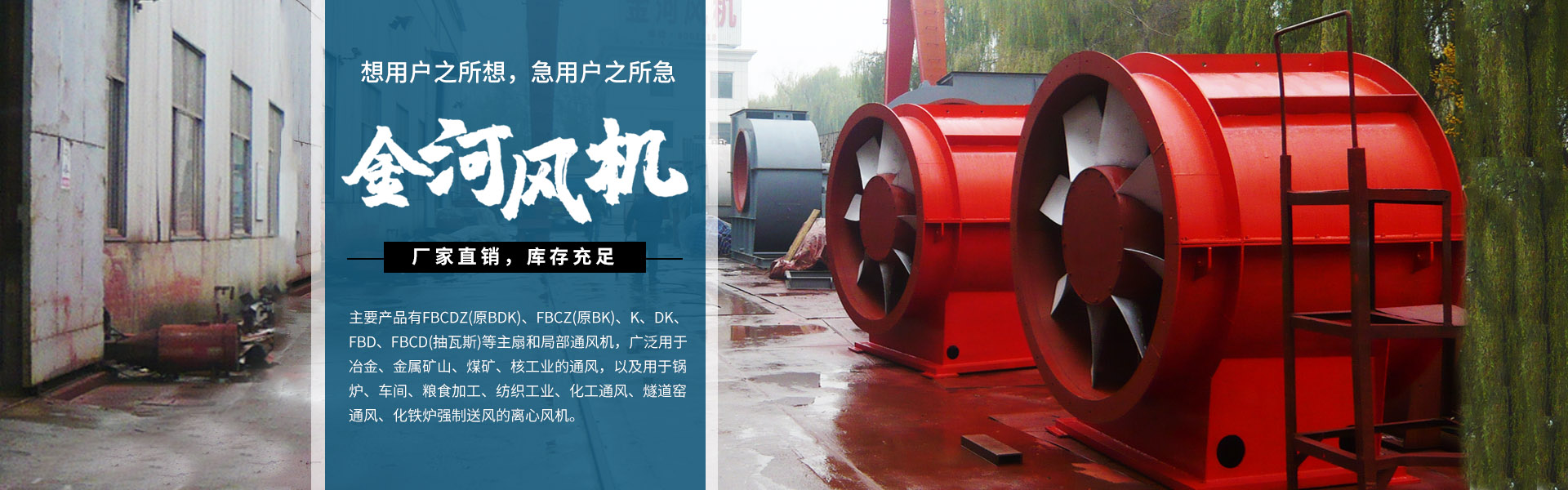 淄博金河風(fēng)機有限公司位于山東省淄博市周村區(qū)南郊鎮(zhèn)。東倚博萊高速,西臨濟(jì)青高速,南靠309國道,北傍膠濟(jì)鐵路,交通方便,通發(fā)達(dá)。我公司技術(shù)力量雄厚,制造設(shè)備精良,測試手段完善,產(chǎn)品均有生產(chǎn)許可證、煤礦礦用產(chǎn)品安全標(biāo)志證書和防爆合格證。提供70多個系列,800多種規(guī)格。主要產(chǎn)品有FBCDZ(原BDK)、FBCZ(原BK)、K、DK、FBD、FBCD(抽瓦斯)等主扇和局部通風(fēng)機,廣泛用于冶金、金屬礦山、煤礦、核工業(yè)的通風(fēng),以及用于鍋爐、車間、糧食加工、紡織工業(yè)、化工通風(fēng)、燧道窯通風(fēng)、化鐵爐強制送風(fēng)的離心風(fēng)機。